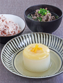 かつおの効いた濃いめの出汁をとり、牛肉を入れたお吸い物。