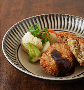 2月は洋食の献立です。 早生キャベツのメンチカツ ひき肉に負けない…