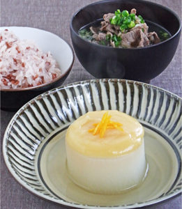 1月は日本料理です。冬の食材を生かした、基本的な献立です。 赤米ご…