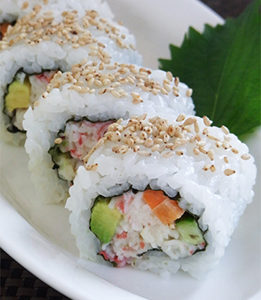 7月は和食です。 カリフォルニアロール カニ風味かまぼこと、アボカ…