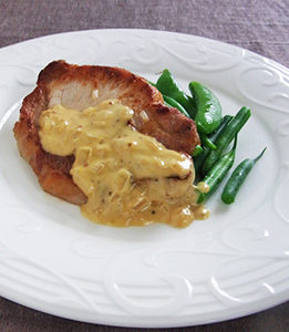 今月はフレンチです。 ポークソテー マスタードソース 豚ロース肉を…